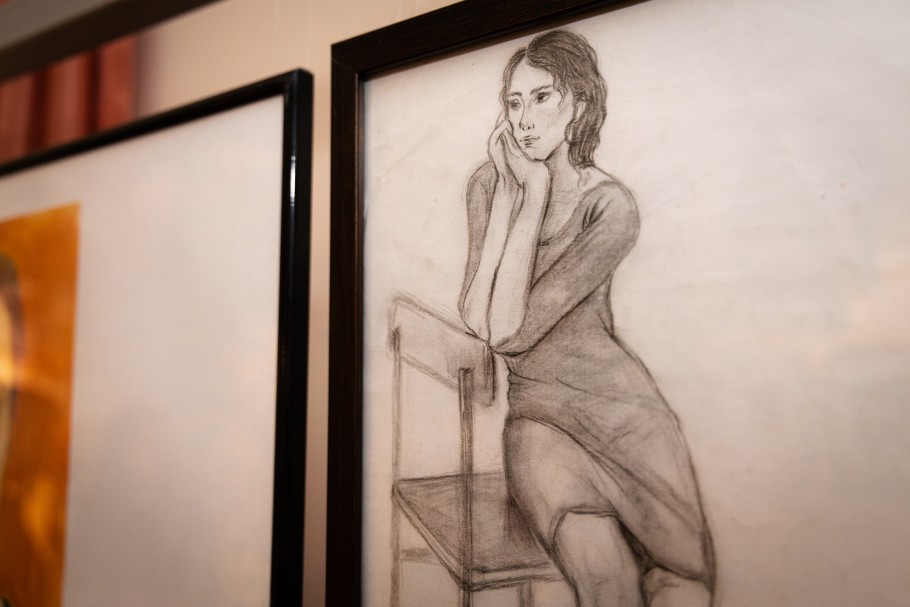 – Рисовать я начала два года назад, а занимаюсь с преподавателем всего год, – с улыбкой сказала ученица Ольга Жибер. – Чаще всего я нахожу в интернете картинку, которая нравится, и рисую ее. Люблю портреты. Когда узнала, что мои две работы попадут на выставку, я удивилась и обрадовалась – всегда об этом мечтала.