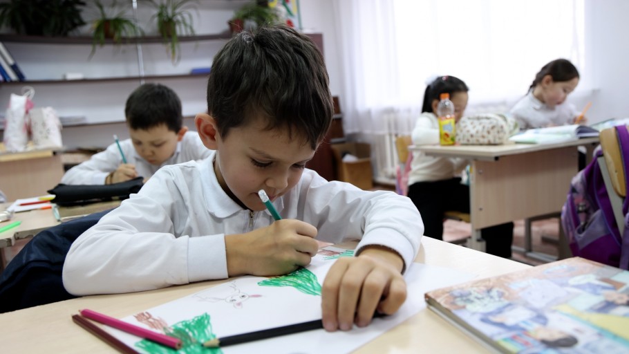– У нас учатся 63 ученика, 33 из них – в начальной школе, – поясняет директор учебного учреждения Олжас Садвакасов. – Я приехал сюда недавно, данную должность занимаю на протяжении года, за это время количество учеников увеличилось. У нас есть и классы, где обучают на казахском языке.