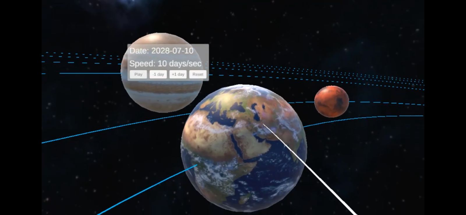 – Бұл жобаны жасауға 3 аптадай уақыт кетті. VR көзілдірік арқылы күн жүйесін жасап, оған жасанды интеллект енгіздік. Оқушы күн жүйесімен танысу үшін виртуалды әлемге өтеді. Кез келген планетаға «ұшып барып», оларды көзбен көріп және чат арқылы тілдесе алады. Әр планетада ЖИ орнатылған, ол кез-келген сұраққа жауап береді. Мысалы, чатта «сенің атың кім, сенің радиусың қандай, жылына неше рет айналасың?» деген тәрізді сауалдарды жолдап, жауап алуға болады, – деп Алдияр өз жобасын таныстырды.