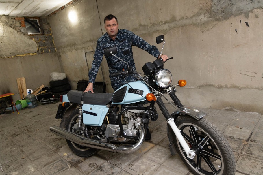 Еще одним открытием для нас стало то, что наш собеседник является владельцем легендарного мотоцикла «Иж Планета-5» 1991 года выпуска. Этот двухколесный транспорт проехал всего чуть больше тысячи километров. Практически в новом состоянии и, можно сказать, музейный экспонат.